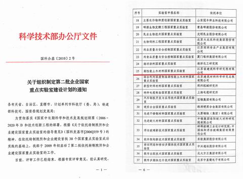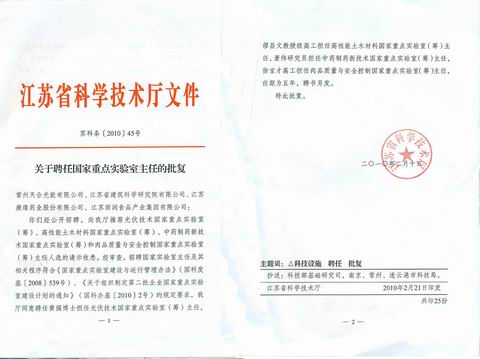 今年2月,国家科技部文件下发《关于组织制定第二批企业国家重点实验室建设计划的通知》(国科办基[2010]2号)的文件,我院申报的高性能土木材料国家重点实验室被列入第二批企业国家重点实验室建设计划,经公开招聘和主管部门审核,缪昌文董事长被评聘为实验室主任。